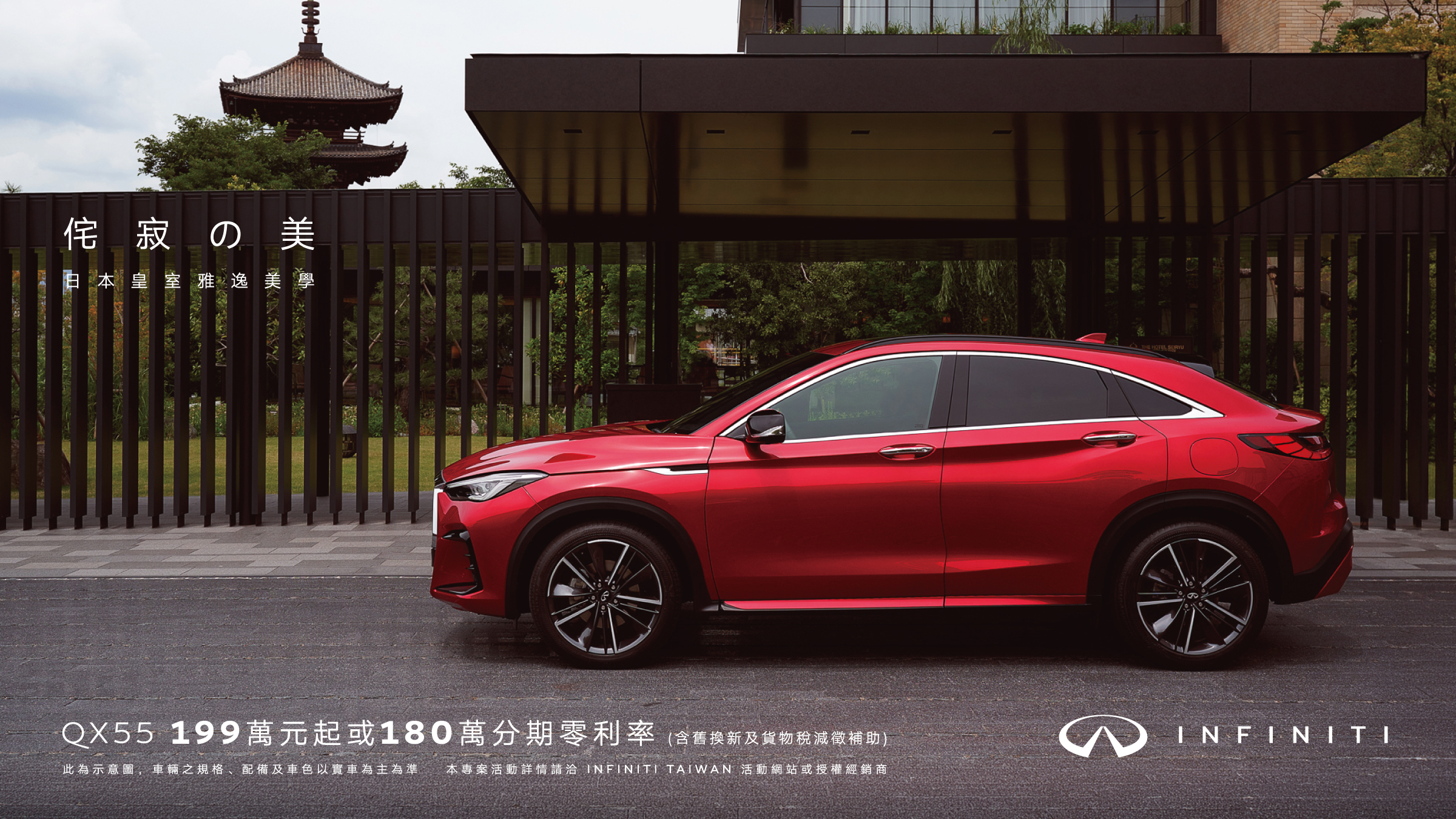 QX55 199 萬元起或享 180 萬分期 0 利率 (含舊換新及貨物稅減徵補助)